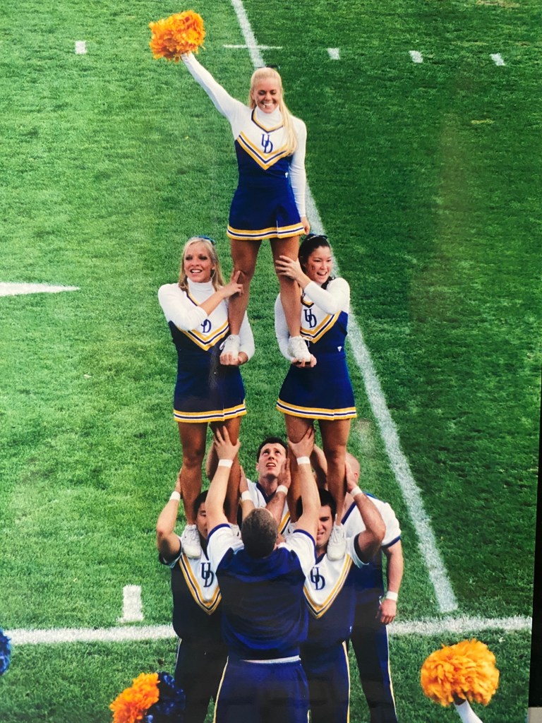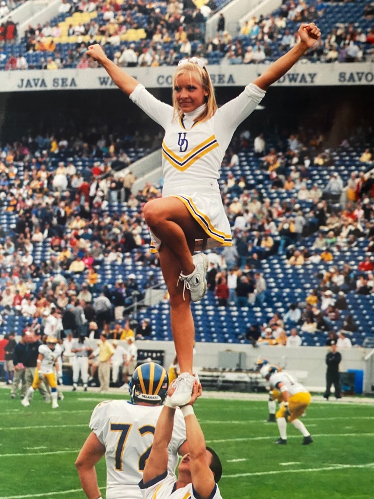 Kayte grew up as a cheerleader, dancer and gymnast. She cheered for her high school Cheerleading Squad and Dance Team while also cheering for a competitive All Star Cheerleading team in Pittsburgh, PA. Kayte was recruited to cheer for the University of Delaware Co-ed Cheerleading team during college; cheering for Football & Basketball games and competing at the UCA Nationals. While cheering for the Blue Hens, Kayte also coached Delaware’s non-competitive Cheer team, the “Yell Squad.”